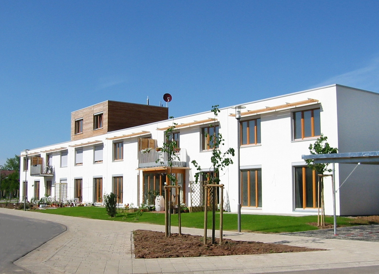 Ökologische, ökonomische sowie gemeinschaftliche Faktoren bestimmten die Gestaltung des Gesamtprojekts. Für die voll unterkellerten Reihenhäuser sind An- und Aufbaureserven vorgesehen, so dass Wohnbedürfnisse für kleine und große Familien abgedeckt werden. Die Grundrisse im Erdgeschoß sind in offener Form angelegt, im Obergeschoß befinden sich Kinder- und Schlafzimmer. Großzügige Fensteröffnungen auf der Süd-West-Seite ermöglichen die Nutzung passiver Sonnenenergie. Die Häuser sind in Massivbauweise mit Dachbegrünung hergestellt.